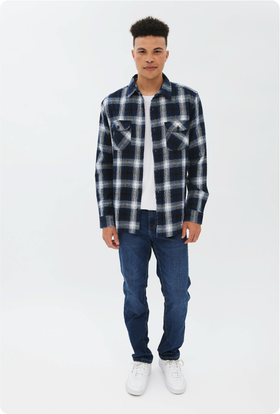 Pour lui, on alterne entre détente et look soigné. Optez pour un style cool et décontracté avec des jeans amples vintage, ou misez sur des coupes plus structurées comme les Brodie Slim Straight, Zane Slim ou Chase Skinny. Besoin d’un look plus utilitaire? Essayez les jeans cargo style charpentier ou gardez ça simple avec les Liam Straight ou Jake Loose. Des finis usés aux teintes foncées intemporelles, il y a une coupe pour chaque occasion.