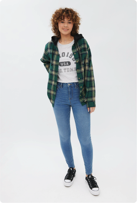 Pour elle, on a tous les essentiels en denim : jeans baggy, jeans à jambe large, jeans ballon, jeans droits pour tous les jours. Vous aimez une coupe plus ajustée? Essayez nos jeggings galbants, jeans évasés ou jeans bootcut – parfaits pour un look rétro et flatteur. Avec des délavés vintage, des tons pâles, des rinçages foncés et encore plus de nouveautés à venir, votre garde-robe denim vient de s’élever d’un cran.