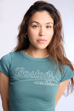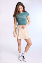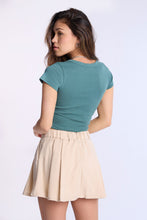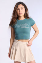 Jersey en tricot. Sérigraphie sur le devant. Motifs imprimés. Coupe écourté et près du corps. Manches courtes.