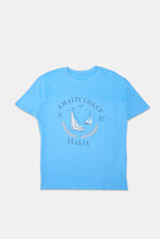 Knit jersey. Themed graphics. Short sleeves. Crew neck. Boyfriend fit.
