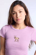 Knit jersey. Themed graphics. Short sleeves. Cropped and fitted Baby tee, cut close to the body for a silhouette that hugs your curves.