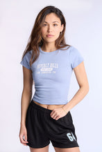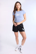 Knit jersey. Themed graphics. Short sleeves. Cropped and fitted Baby tee, cut close to the body for a silhouette that hugs your curves.