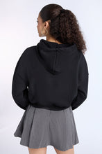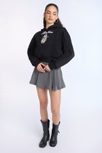 Knit fleece. Pullover hoodie. Themed embroidered and printed graphics. Loose and cropped fit. Ribbed cuffs and bottom hem. 1 pocket.