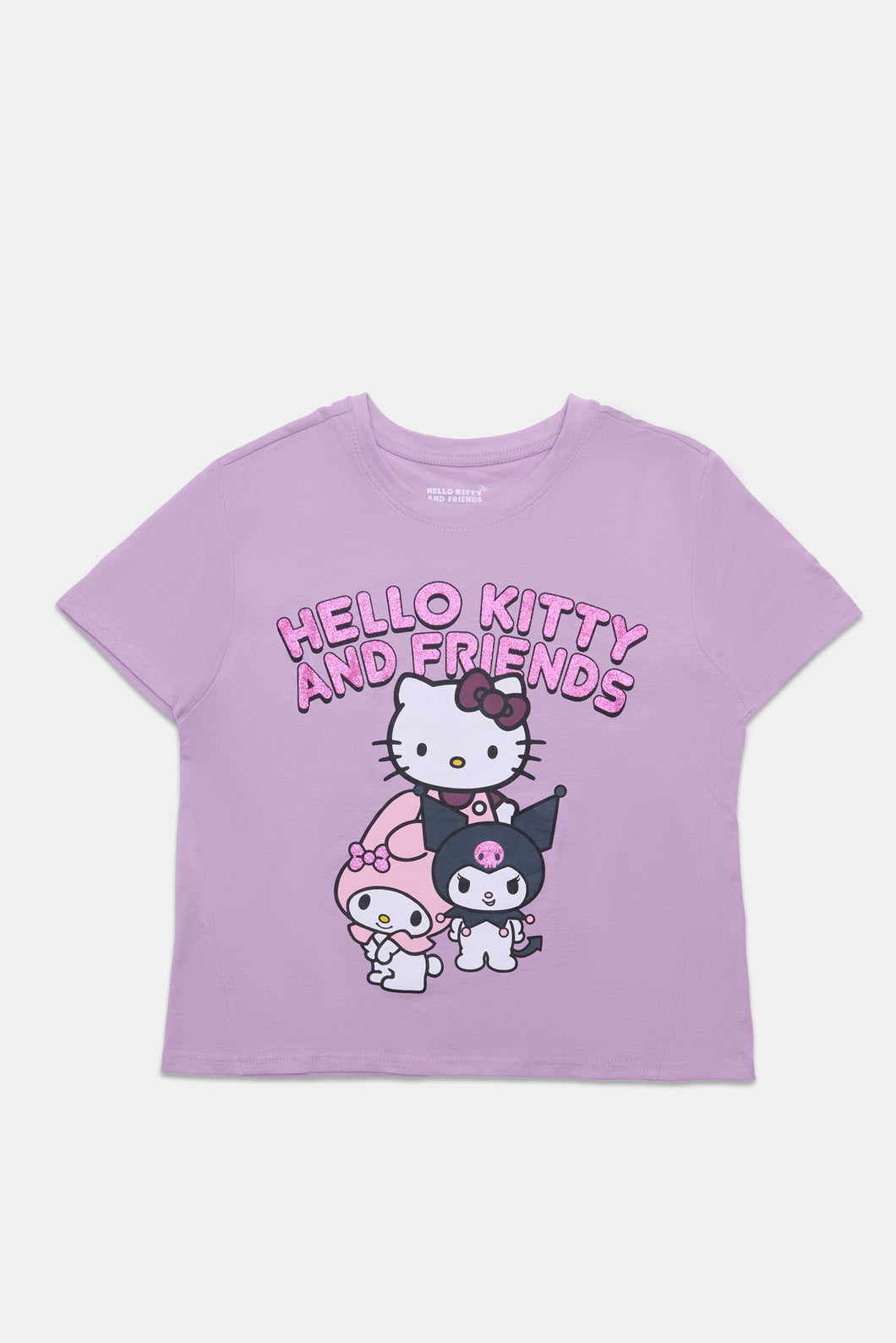 Hello Kitty And Friends Glitter Graphic Boxy Cropped Tee